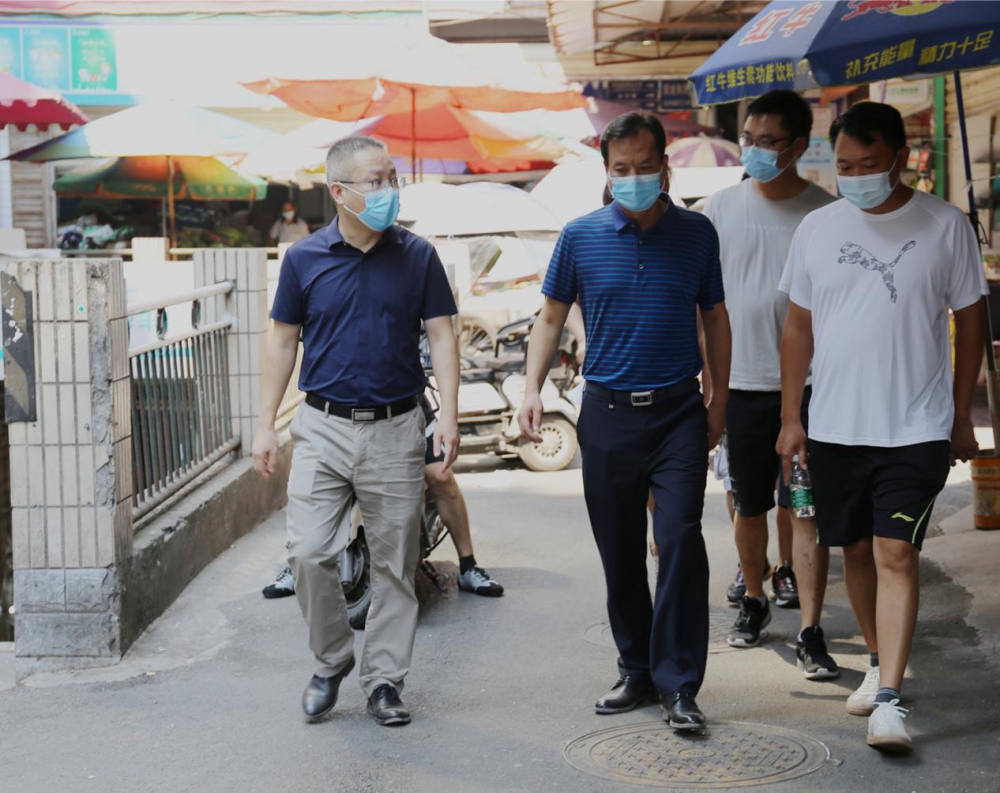 随后,吴皓一行来到醉美农超、华丰农贸市场,重点查看了市场的疫情防控工作开展情况。