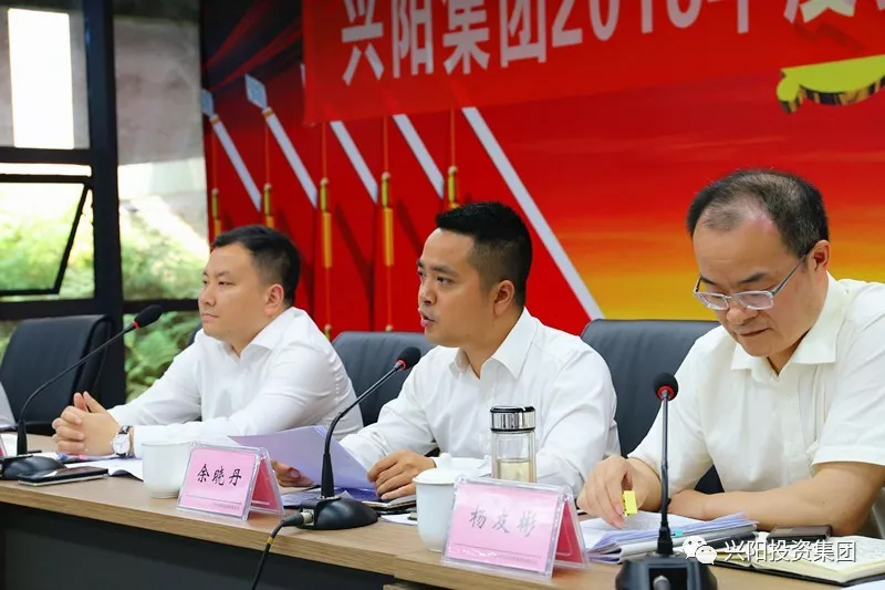 5月4日,兴阳投资集团召开2018年度党建工作暨职工大会,全面总结2017年工作,部署2018年发展重点任务,动员全体干部职工立足新时代,不忘初心,牢记使命,奋力开创兴阳幸福美好未来。集团党委书记、董事长杜雪峰,集团党委副书记、总经理余晓丹,集团党委副书记许开琼,集团党委委员、纪委书记杨友彬,集团常务副总经理熊家辉,集团党委委员、副总经理张裕,集团党委委员、副总经理黎大春出席会议。集团各部室(中心)、各子公司200余名干部职工参加会议。会议由许开琼主持。