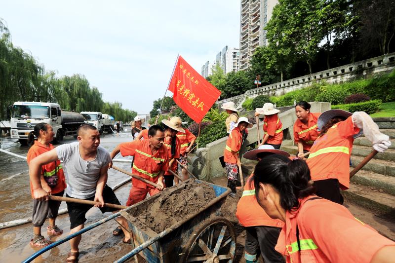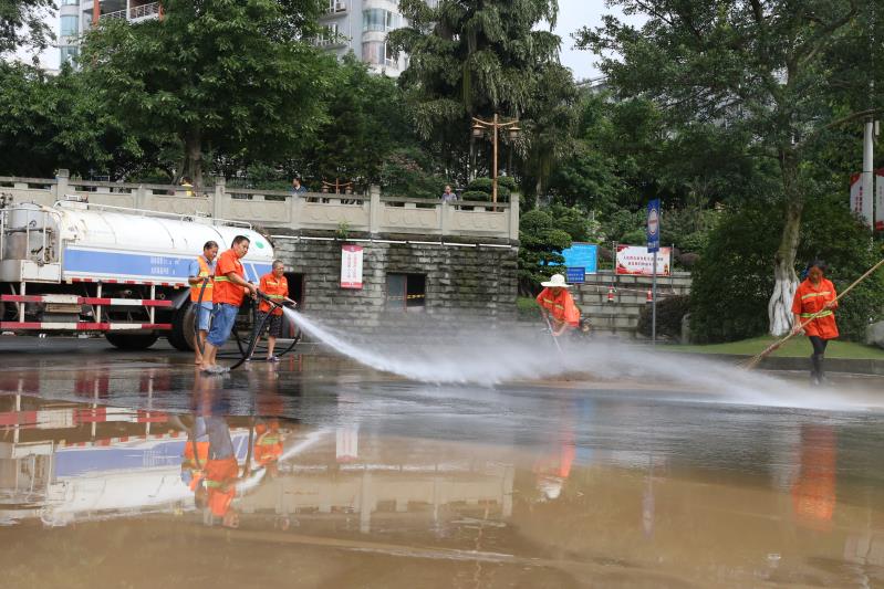 为打赢这场清淤突击战,兴阳集团党员先锋队与环卫工人一道奋战一线,全力清淤。截至目前,兴阳集团已出动1000余人次环卫工人,垃圾清运车、洒水车、高压清洗车等环卫机械车辆100余台次。经连续奋战,冲洗积淤用水2000余吨,清洗面积达120万平米。